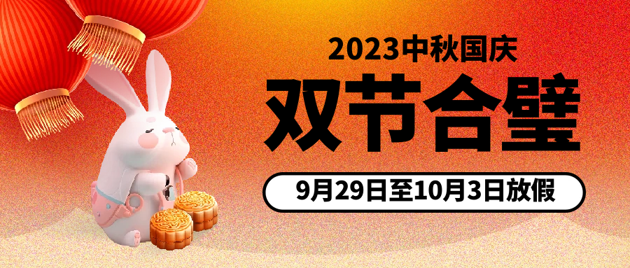 尊敬的客戶朋友及合作伙伴:您好!中秋國慶即將來臨之際,在此深深感謝您長期以來對我公司的信任和支持! 現(xiàn)根據市場以及結合我司實際情況,中秋國慶期間我司工作安排如下: 2023年9月29日(周五)至10月3日(周二)放假。 節(jié)前貨物爆增,各渠道出貨時間將會提前,為不影響時效請盡早發(fā)貨。